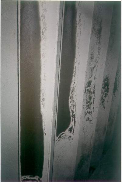 LEFT: Polishing of the collecting plates in the first field indicates high gas flow along the bottom of the precipitator. This can cause reentrainment of the dust and allow gas to bypass the treatment zone by sneaking under the field. It can also cause the wire electrodes to swing, reducing the spark-over voltage and fatiguing the wires.